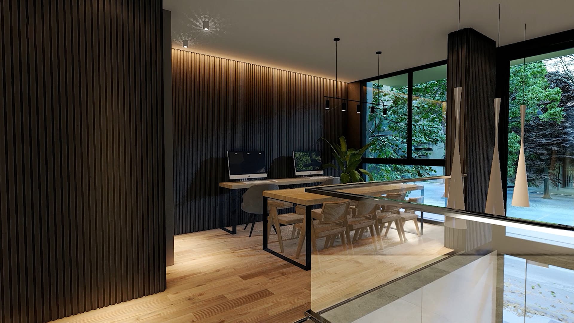En el nivel 1 habrá un espacio multifuncional, con kitchenette y baño, que podrá ser utilizado como sala de estar o co-work