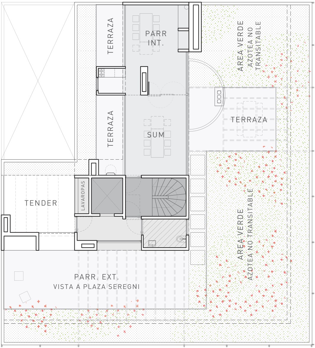 - Espacio previsto para lavadero con capacidad para dos lavarropas + dos secarropas y área de tender.